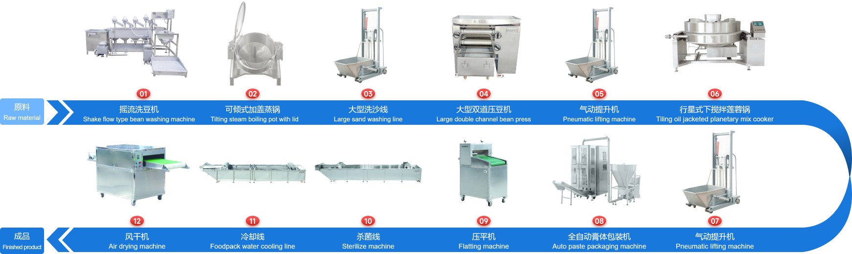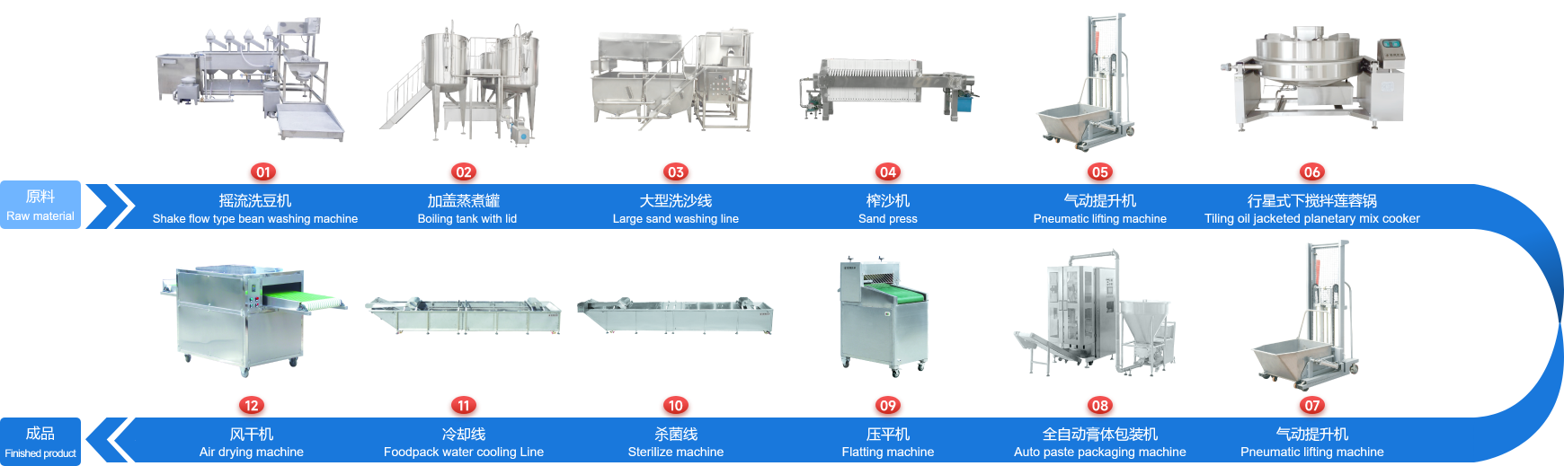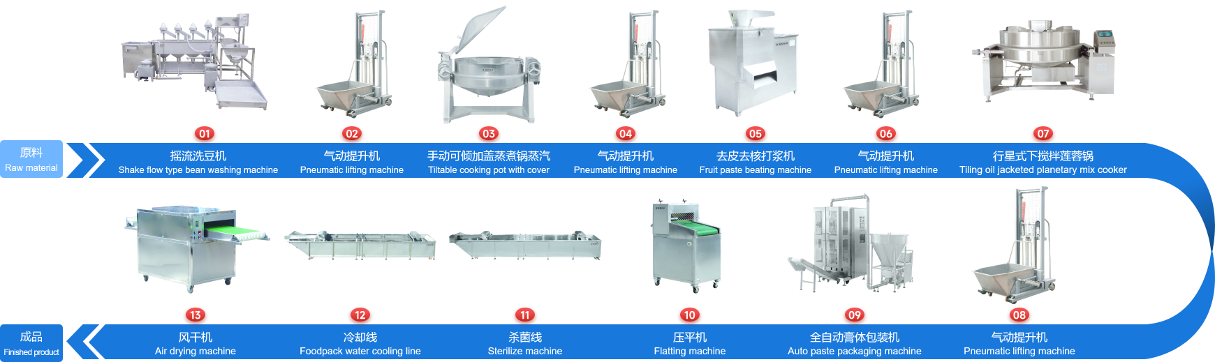 企業(yè)經(jīng)多年研制開發(fā)的下攪拌可傾式蓮蓉鍋、下攪拌夾層鏟鍋、可傾式蒸煮鍋、去皮去核打漿機(jī)、立式熱抽真空包裝機(jī)、餡料風(fēng)干壓平機(jī)、餡料冷卻線、江米條成型機(jī)、循環(huán)過濾油炸鍋、下出料脫油機(jī)等設(shè)備在國內(nèi)同類設(shè)備中達(dá)到綠色環(huán)保標(biāo)準(zhǔn),已報國家專利局和有關(guān)部門申請認(rèn)證,成為企業(yè)的品牌產(chǎn)品,深受廣大客戶的支持和信賴。